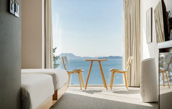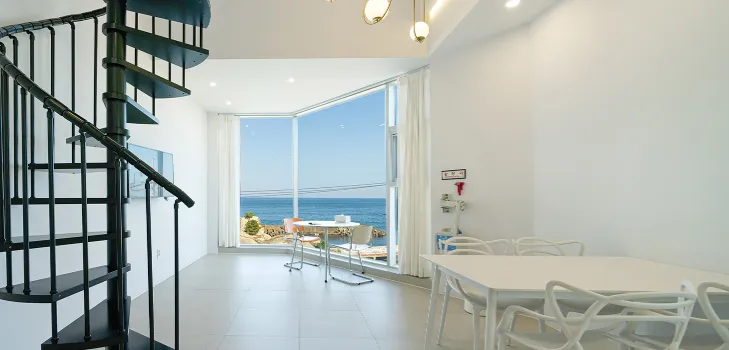 ROOMS 푸른 바다의 아름다움이 펼쳐지는 휴식의 공간 일상의 소란을 잊고 편안한 휴식을 즐겨보세요.