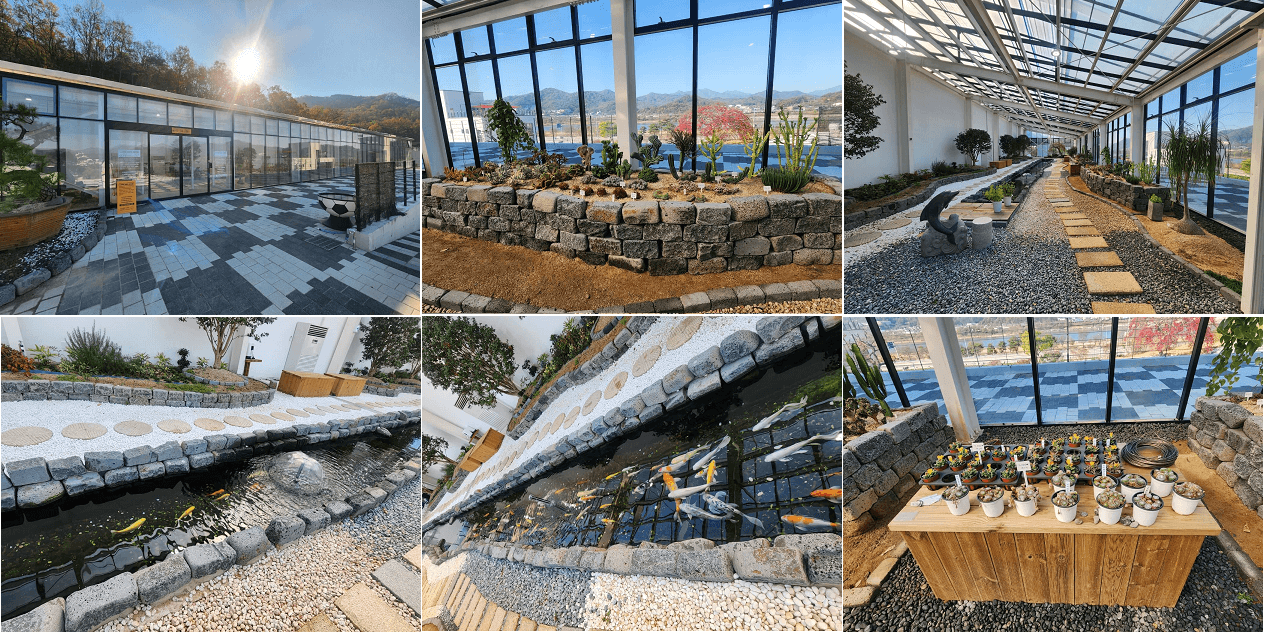 식물원에는 중간을 가로지르는 연못 속에 금붕어들이 많이 있습니다. 러키홀에서 금붕어밥을 판매하는데 여기에서 체험하면 될 것 같습니다. 그리고 그 옆에는 여러 가지 다양한 식물들이 있습니다. 아직은 여기 식물원도 손보는 단계인 듯 구석에 약간 정리가 안된 흔적들이 있기는 하지만 중간을 가로지르는 연못 구경하기에는 괜찮을 것 같습니다.