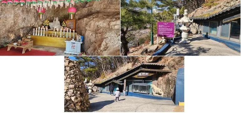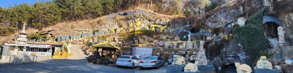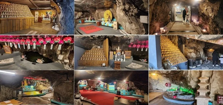 과거 자수정 채굴장이었던 지역에 석굴을 활용하여 조성된 독특한 형태의 사찰입니다. 대웅전과 큰스님 방 등이 동굴내에 위치하고 있어 동굴 사찰의 독특한 분위기를 느낄 수 있습니다. 이곳은 국내에서 보기 드문 형태의 사찰로, 동굴 사찰 내에는 다양한 테마를 가진 불상들이 자리하고 있습니다.