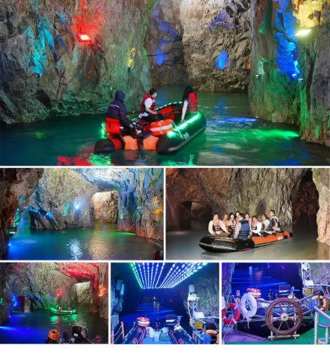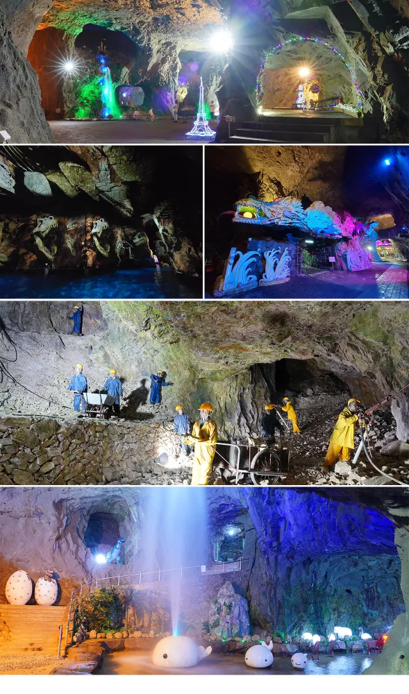 동굴 내부는 마치 미로처럼 어우러져 있어, 보트를 타고 동굴 속을 탐험하는 수로탐험 코스와 2층 동굴에 위치한 쥬라기월드를 통한 공룡탐험 코스가 제공됩니다. 수로탐험에서는 동굴 속 자수정도 찾아보며 신비로운 분위기를 느낄 수 있습니다. 또한, 쥬라기월드에서는 2억만년 전의 크고 작은 공룡들과 캐릭터 유등 등이 어린이들의 동심을 자극합니다.