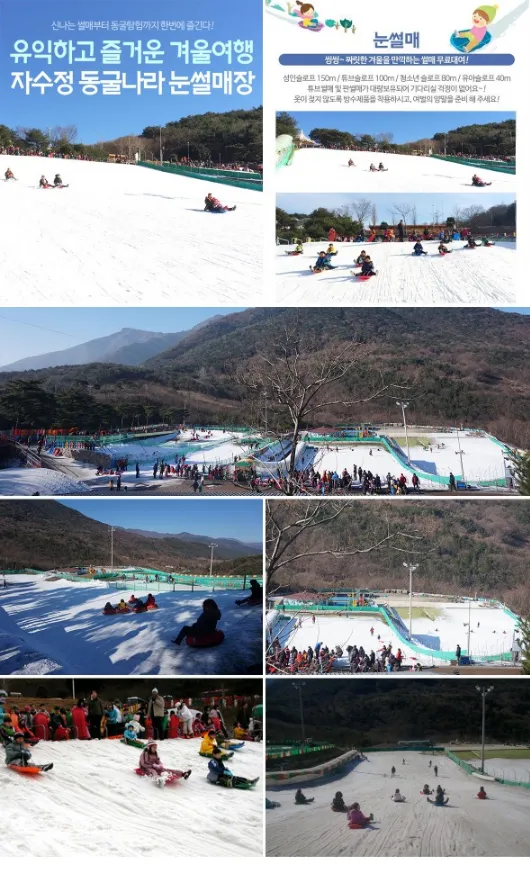 특히, 겨울에는 눈썰매장에서는 즐거운 눈썰매 체험이 가능합니다. 성인슬로프, 튜브슬로프, 청소년 슬로프, 유아슬로프 등 다양한 썰매 체험 코스가 마련되어 있으며, 여러 놀이기구들이 대량으로 보유되어 기다리실 걱정이 없습니다.