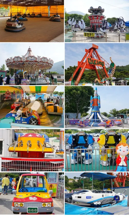 동굴 내에는 다양한 놀이시설이 마련되어 있습니다. 회전목마, 레이스카, 범퍼카, 바이킹, 로켓, UFO, 슬라이딩 비행기 등 다채로운 놀이기구들이 어린이들의 꿈과 즐거움을 실현할 수 있는 공간으로 변신합니다.