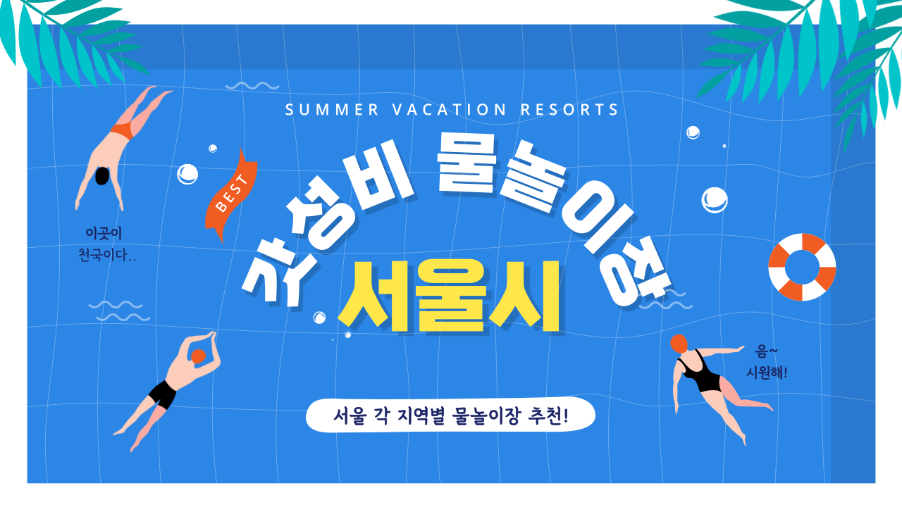 무더운 여름, 뜨거운 햇볕을 피해 시원한 물속으로 풍덩! 하고 싶은 친구들 모두 모여라! 멀리 떠나지 않고도 서울에서 신나는 물놀이를 즐길 수 있는 곳이 아주 많다는 사실, 알고 있었나요?