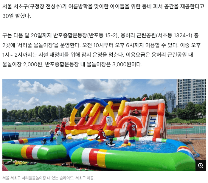| 잠원 한강공원 수영장 | 양재천 수영장 물놀이장 | 서초구청 홈페이지 |